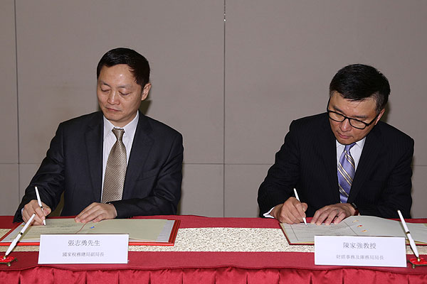 财经事务及库务局局长陈家强今日在香港与国家税务总局副局长张志勇签订《内地和香港特别行政区关于对所得避免双重征税和防止偷漏税的安排》第四议定书。