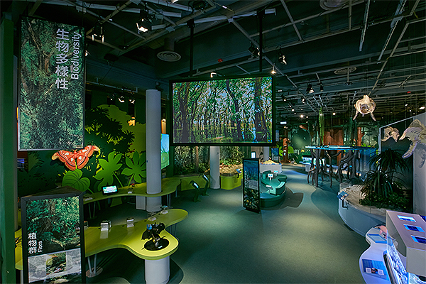 该「生物多样性展厅」模拟天然环境和生境,参观者可透过互动展品、生境场景和标本,从不同角度探索自然。
