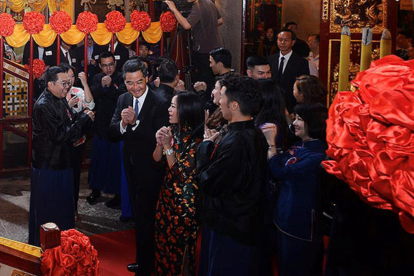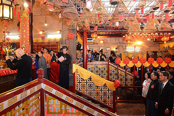 今天到荷李活道出席东华三院奉祀文武二帝秋祭典礼。文武庙在香港有169 年历史,一向香火鼎盛。文武庙秋祭是香港的文化遗产之一。据主办单位所述,回归以来,这是第一次有在任特首出席秋祭。